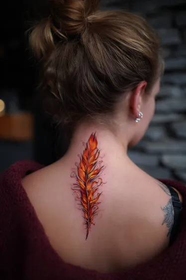 Fiery Feather Spine Tattoo