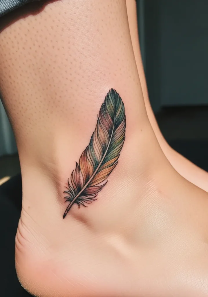 Feather Ankle Tattoo With Natural Tones