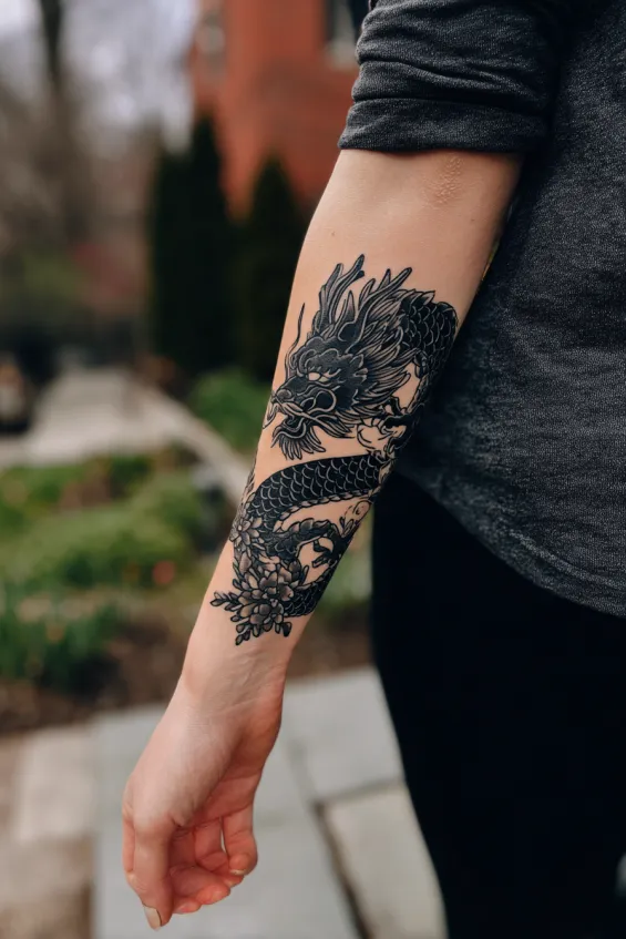 Blackwork Dragon Forearm Tattoo