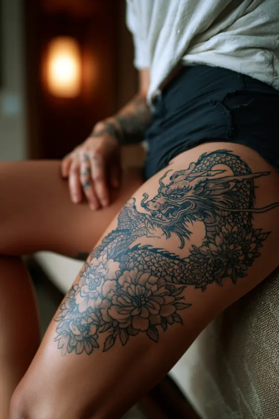 I have always loved how dragon tattoos manage to look fierce and feminine at the same time. There is something about that mix of fire and grace that just feels powerful on a woman’s skin.