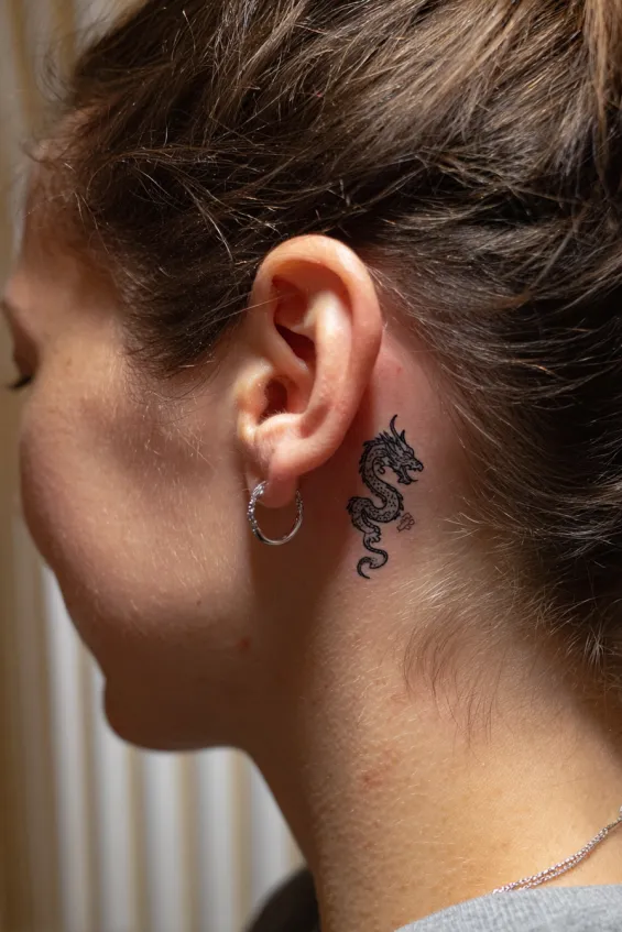 I absolutely adore tattoos in this spot. It feels playful and a little mysterious. This dragon may be small, but it carries a whole lot of attitude. It is perfect for someone who loves delicate ink with a bit of edge.