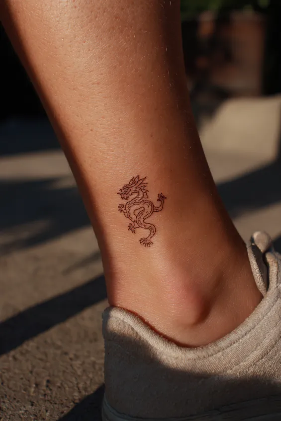 Minimalist Dragon Ankle Tattoo