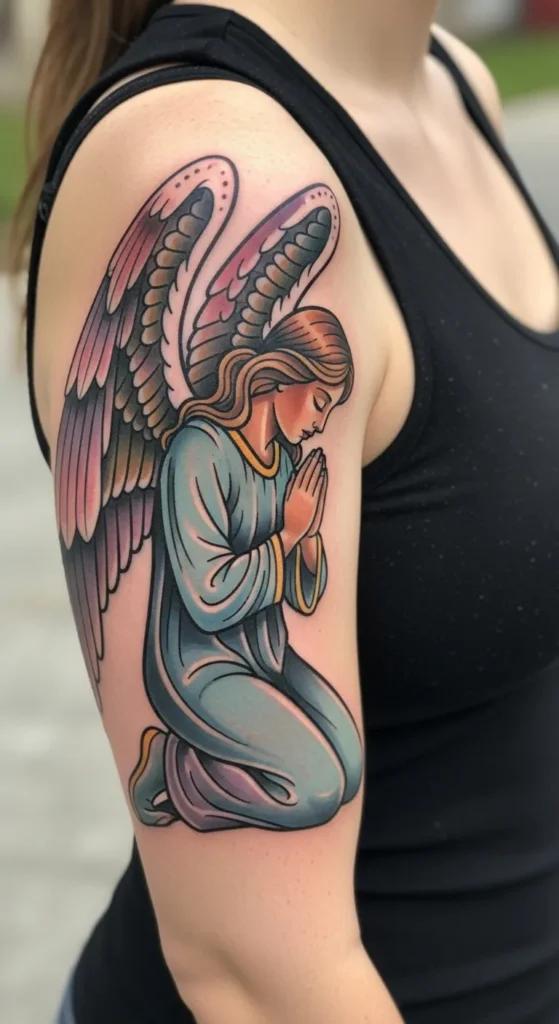 Neotraditional Praying Angel with Pastel Wings