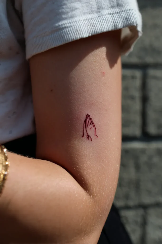 I love how something so small can hold such a powerful meaning. For me, praying hands always represent quiet strength and those private conversations with God that no one else sees. It feels like a tiny reminder etched on the skin that faith does not have to be loud to be strong.