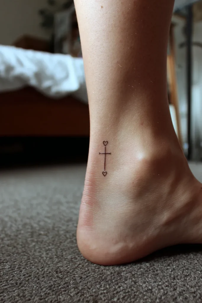 There is something so grounding about an ankle tattoo like this. I always feel like it symbolizes faith guiding every step forward. It is simple, but that simplicity is what makes it so striking. For me, a tiny ankle cross feels like carrying a reminder of God with you wherever life takes you, quietly steady and always close.