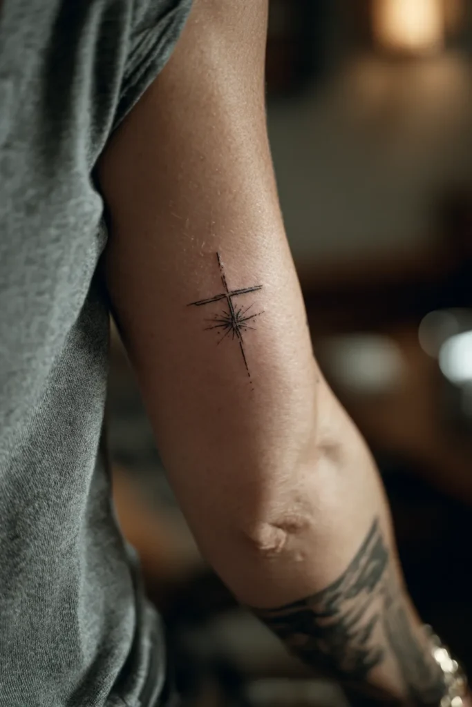 I love how a small cross, a delicate dove, or a fine line symbol can sit quietly on the skin and still speak straight to the heart.