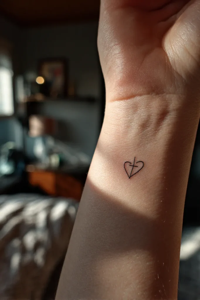 I find wrist placements so powerful because they are easy to glance at during the day. A small sacred heart feels like a steady reminder of devotion and faith. It is tender and symbolic without feeling dramatic. I love how it speaks to love and spirituality in the most subtle way.