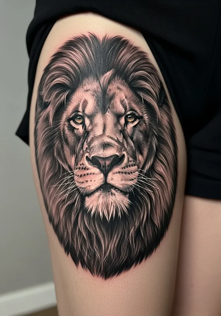 Here are my favorite thigh realism tattoos that perfectly balance power and beauty, each one proving that fierce and feminine can absolutely go hand in hand.