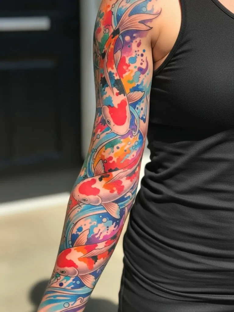 Koi Fish Watercolor Sleeve With Flowing Motion
